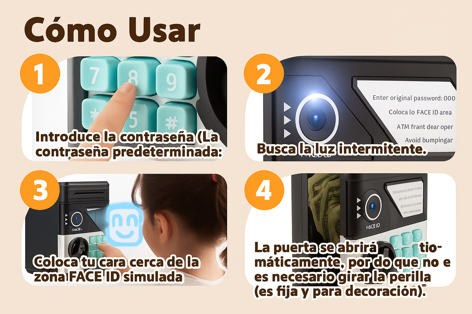 Con su contraseña electrónica de 4 dígitos, cada niño se sentirá como un verdadero cajero: solo se abrirá con la clave correcta, ¡seguridad total y emoción garantizada! Además, la contraseña es fácil de cambiar, ideal para mantener la diversión y la responsabilidad al máximo.