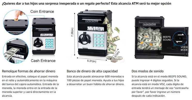 Enseñando a los niños a planear, contar y administrar su dinero de bolsillo de manera entretenida. Y el desplazamiento automático de billetes hace que cada depósito sea mágico y emocionante.