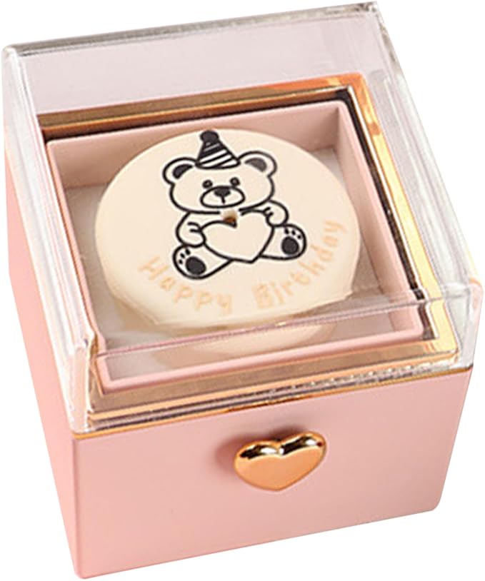 La caja de anillo de pastel de oso destaca por su apariencia exquisita y materiales de alta calidad. Fabricada en ABS suave y resistente al desgaste, aporta un toque de elegancia y sofisticación a cualquier ocasión. Su diseño refinado transforma un simple anillo en una pieza central digna de admiración, perfecta para quienes buscan sorprender con estilo y buen gusto.