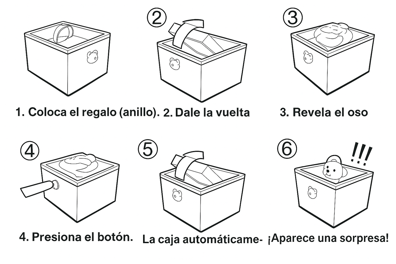 Más que una caja, es una experiencia emocional completa. Ideal para propuestas de matrimonio, aniversarios o cumpleaños, esta caja sorpresa expresa amor y dedicación de una forma original y memorable. Su diseño innovador hace que cada apertura sea un momento de sorpresa, ternura y conexión.